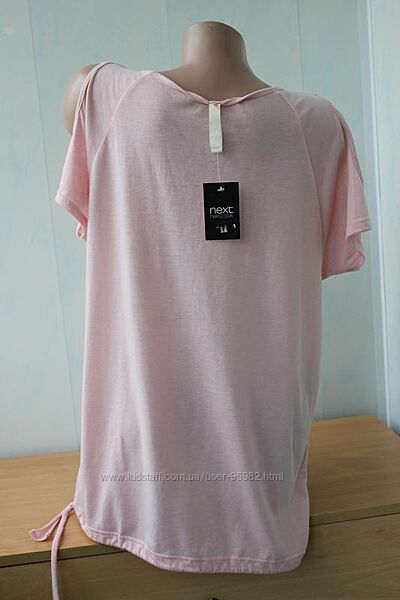 Блуза / футболка next пог - 53, поб- 61, довжина по середині спинки - 63 див. тягнеться, на бирці 16 розмір, на нього і сідає. Тягнеться, внизурегулюється завязками, на блузі додаткова бирка з позначкою Спорт.