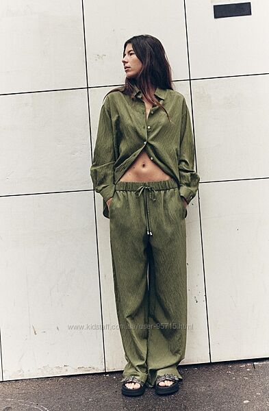 Подробное описание: Легкий костюм Zara в піжамному стилі, сорочка і штани - XS, S, M хакі