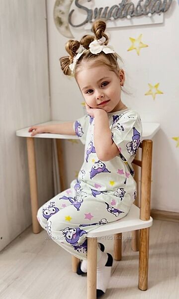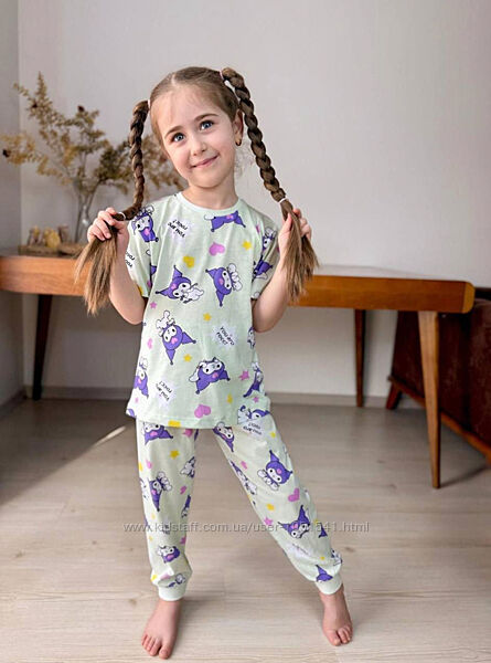Дитячі трикотажні демісезонні піжами . Штани на резинці і футболка на короткий рукав , з принтом KUROMIВІК 2-3 р (кофта ПОГ-32 см спина- 40 см штани талія- 22 см довжина - 53 см шаг-36 см ) ВІК 3-4 р ( кофта ПОГ- 35 см спина - 42 см штани талія- 23 см довжина- 59 см шаг- 41 см ) ВІК 4-5 р кофта ПОГ- 44 см спина - 36 см штани талія - 24 см довжина - 64 см шаг - 44 см ) ВІК 5-6 р кофта ПОГ- 37 см спина - 46 см штани талія - 25 см довжина - 67 см шаг - 47см)ВІК 6-7 р кофта ПОГ- 38 см спина - 50 см штани талія - 26 см довжина - 73 см шаг - 52 см) ВІК 7-8 р кофта ПОГ- 39 см спина - 51 см штани талія - 27 см довжина - 74 см шаг - 53 см)