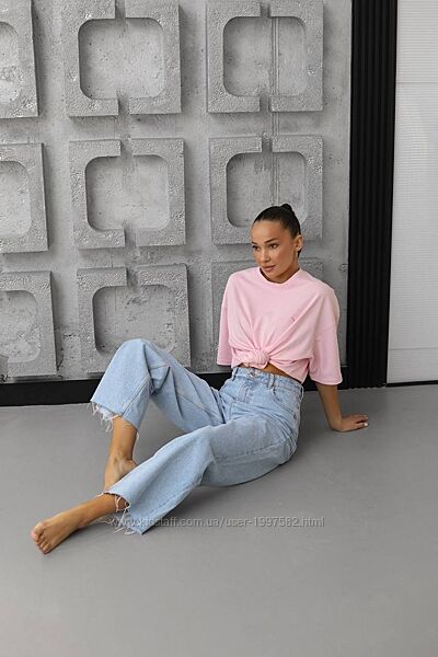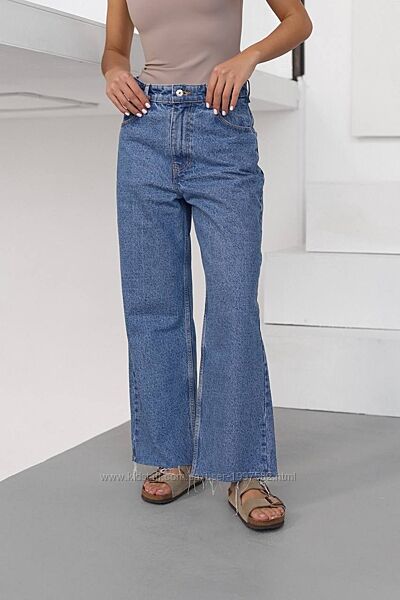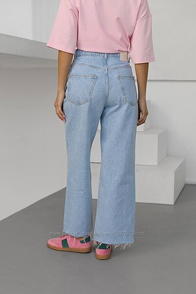 Подробное описание: Жіночі джинси з необробленим низом блакитні сині з високою талією