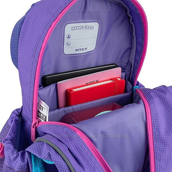 Рюкзак зовні:ортопедична спинка Ergo Kids з м´якими подушечками сприяє правильному розподілу ваги і зниження навантаження на спину;широкі лямки S-подібної форми м´яко і комфортно лягають на плечі;знімний нагрудний ремінь фіксує рюкзак в зручному положенні, легко застібається за допомогою фастекса;простора передня кишеня, усередині якої розташовується кишеня з плюшем для телефону, органайзер для канцелярських дрібниць та знімна ключниця;дві передні кишені на магніті;бічна кишеня з еластичною сіточкою та шнуром з фіксатором – для пляшечки з водою або термоса;бічна кишеня на блискавці;посилене та стійке прогумоване PU-дно, яке легко миється вологою серветкою;ергономічна ручка із пластиковою накладкою;світловідбивні елементи з усіх боків – щоб дитина була здалека помітною в темний час доби;високоякісна надійна фурнітура та приємні на дотик пуллери з гумовим напиленням;міцна та зносостійка тканина: нейлон з армованою ниткою та водовідштовхувальним просоченням;знімний гаманець на карабіні – стильний та функціональний;декор: гумові бейджі, підвіска-брелок.Рюкзак всередині:основне відділення для книг і зошитів;система внутрішніх роздільників, яка дозволяє не просто підтримувати порядок, але і правильно розподіляти вагу;кишеня для планшета з плюшем, що захищає екран;міцна брендована підкладка;іконки-підказки для зручної внутрішньої навігації;поле для персональних даних.