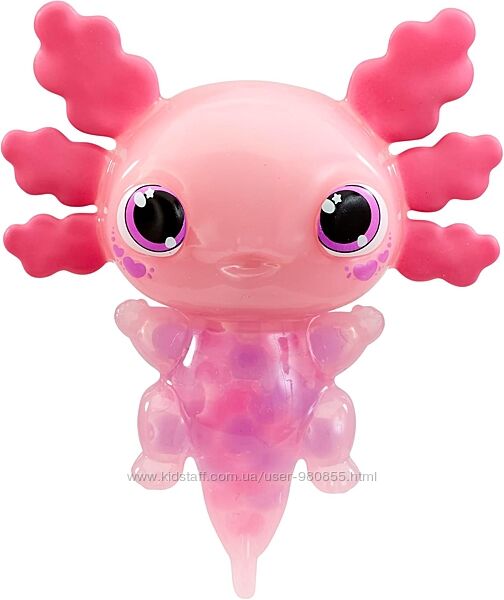 Аксолотль є інтерактивним із унікальною функцією, що активується водою. Ваш милий водяний приятель надзвичайно хлюпає завдяки веселим розтягнутим щупальцям і неймовірно хлюпаючим сенсорним елементам у животику вашого Аксолотля.