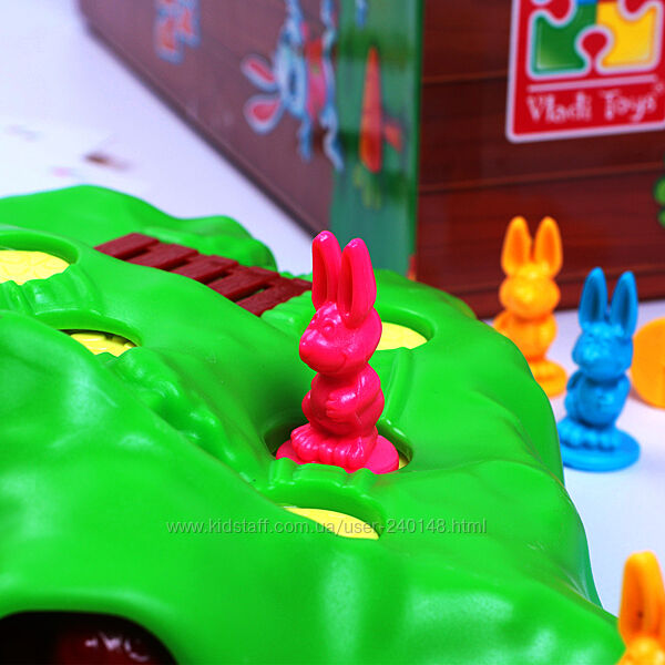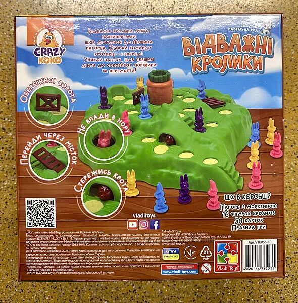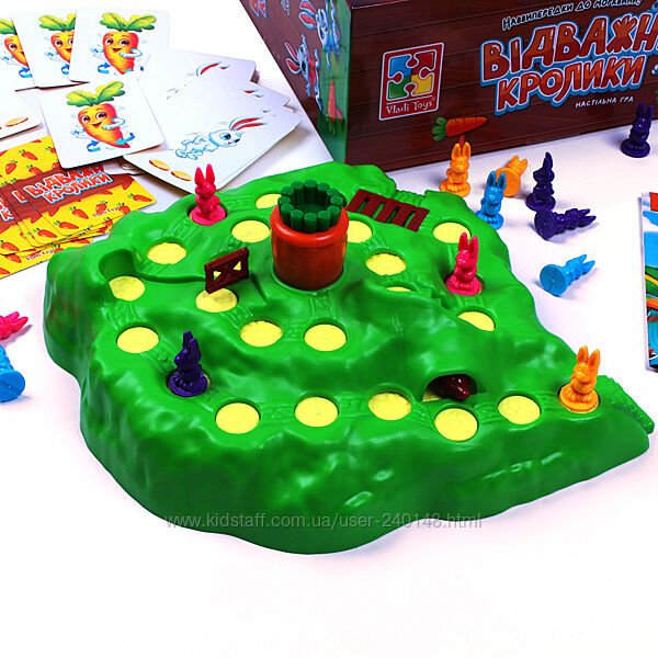 1) Гра настільна Vladi Toys розважальна "Відважні кролики" VT8055-40 (укр) Vladi ToysВідважні кролики мчать наввипередки, щоб приблизитися до соковитої морквини, але будьте обережні, непосидючі кроти можуть зіштовхнути кролика з пагорба, веселої гри!
