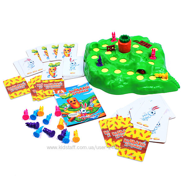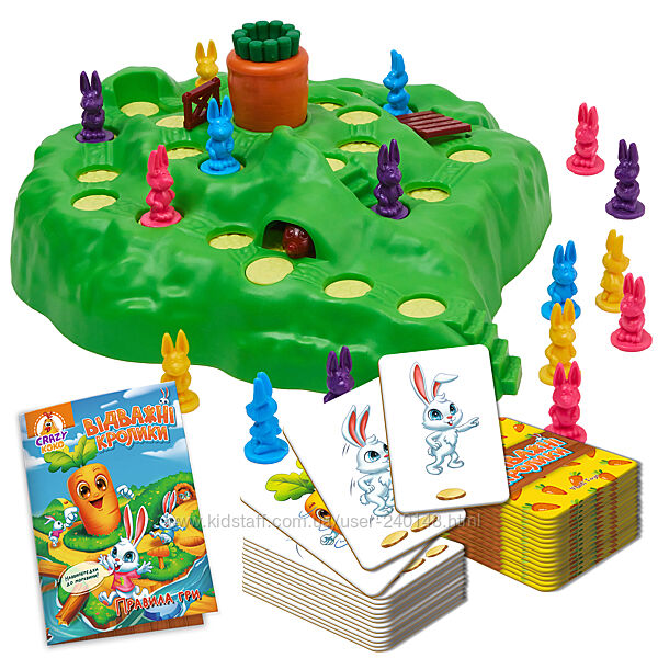 Комплектація: 16 фігурок кроликів, 50 карток, правила гри.