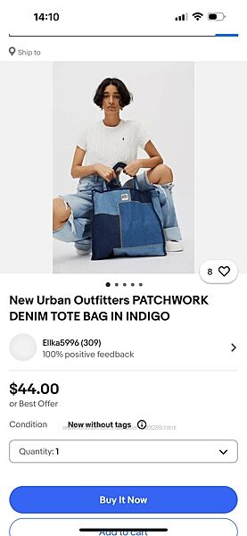 New Urban Outfitters PATCHWORK DENIM TOTE BAG IN INDIGOНадзвичайна велика сумка від BDG у невимушеному клаптиковому дизайні. Випрана бавовняна джинсова конструкція з посиленою обробкою та короткими ручками. На підкладці, з 2 карманами