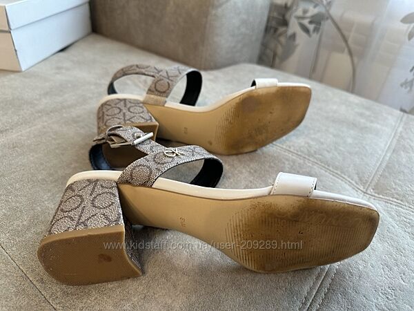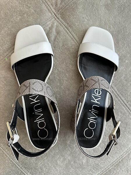 Продаю свої босоніжки Calvin Klein, купила в Нью-Йорку, погуляла там день по місту, не підходять, великі виявились.На ногах виглядають шикарно, мають міцний трапецієподібний каблук, модний квадратний носок і регульований ремінець на щиколотці для надійної посадки, дуже зручні.