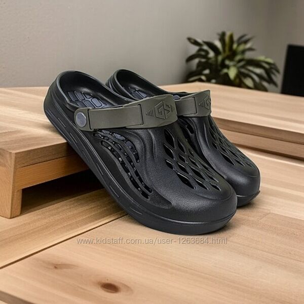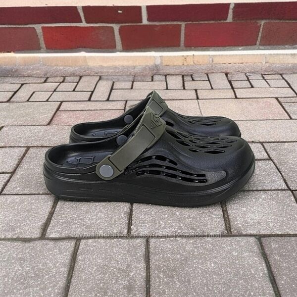 Комфортні мякі крокс/сабо шльопанці чорного кольору ремінець хакі