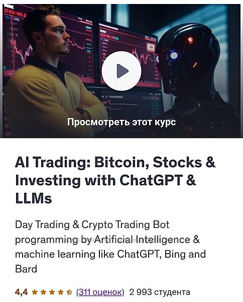 Добро пожаловать на курс «AI Trading:Биткоин, акции и инвестирование с ChatGPT и искусственным интеллектом».