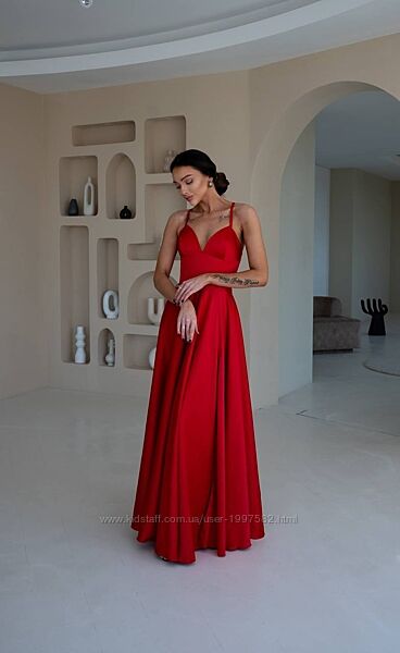 Подробное описание: Вечірня сукня максі атласна з розрізом на нозі з бретелями з чашками