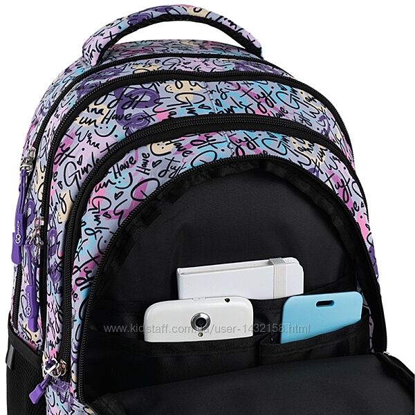 3 місткі відділення на блискавці для зошитів, підручників, канцелярії та купи інших речей.