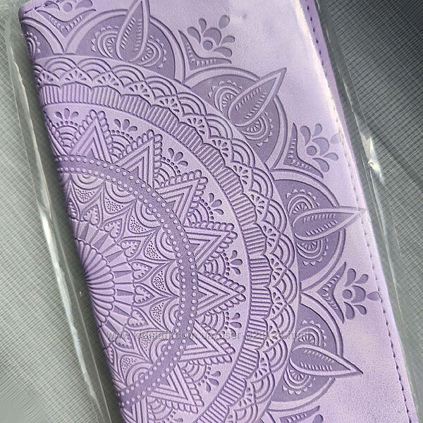 Элегантный дизайн, нежный оттенок сирени, плотная (твердая) синтетическая кожа и мандала, символизирующая гармонию мира, его порядок и баланс. В котором мы все сейчас остро нуждаемся).Чехол новый, в упаковке. Куплен случайно – из-за путаницы в заказе. На последнем фото детальнее.