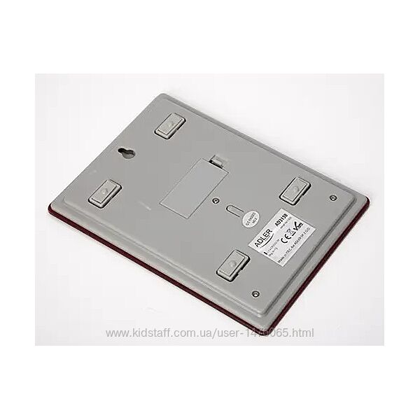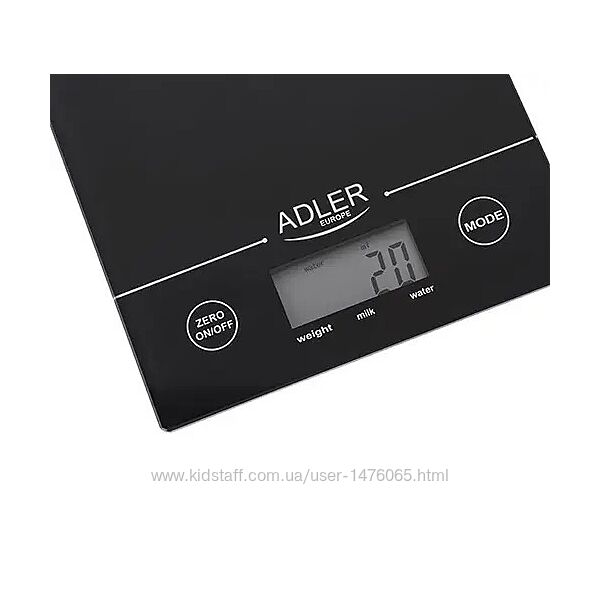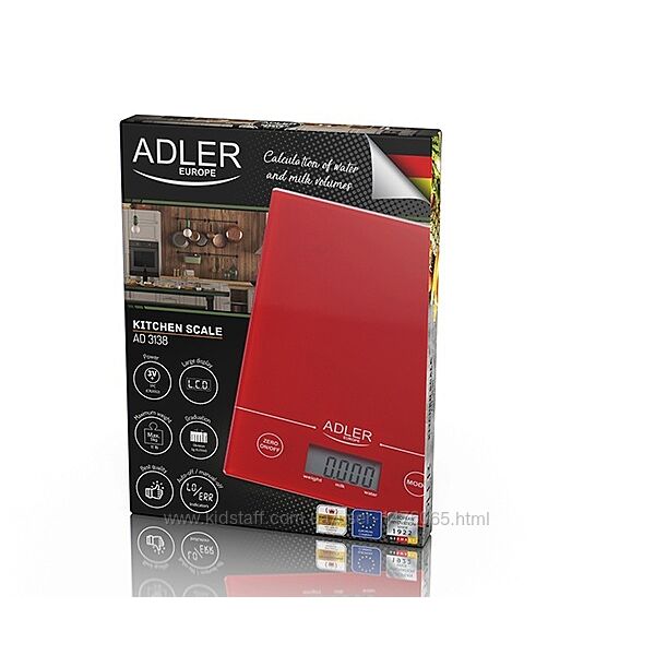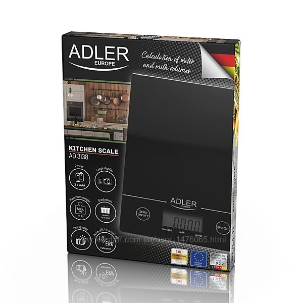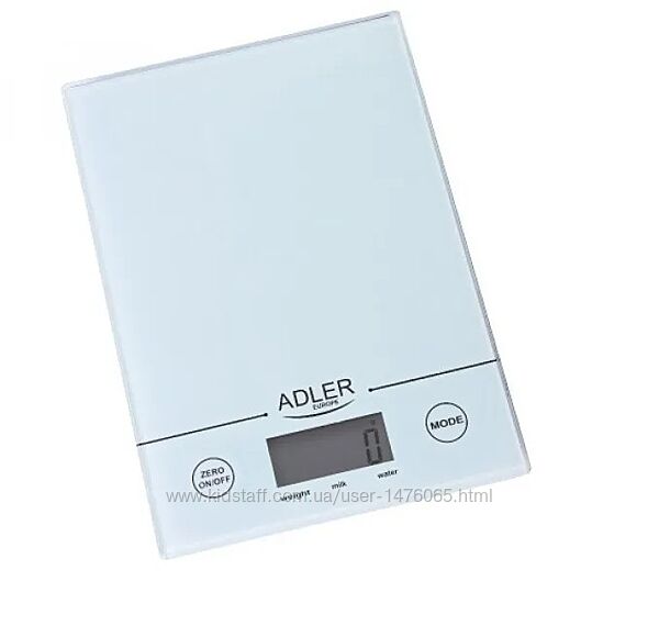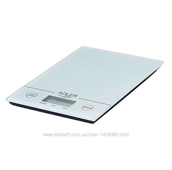 Привезені з Європи нові сенсорні кухонні ваги Adler AD 3138. Максимальна допустима вага - 5 кг, крок вимірювань пристрою - 1 г, можливість зважування з урахуванням тари, зміна одиниць вимірювання, індикація ваги і режимів роботи на екрані з підсвічуванням, платформа із міцного загартованого скла, сенсорне електронне керування, індикатор перевантаження і низького заряду батарей, живлення від елемента CR2032, країна-виробник - Польща. Гарна європейська якість.Надається справжня документована гарантія - 6 місяців.