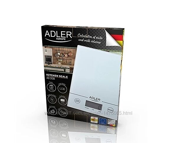 Подробное описание: Сенсорні кухонні ваги із загартованого скла з Європи Adler AD 3138