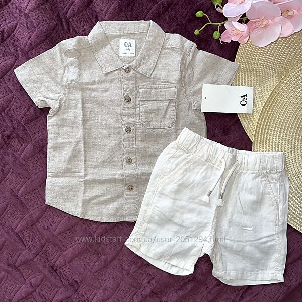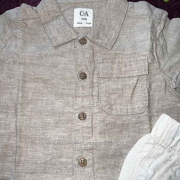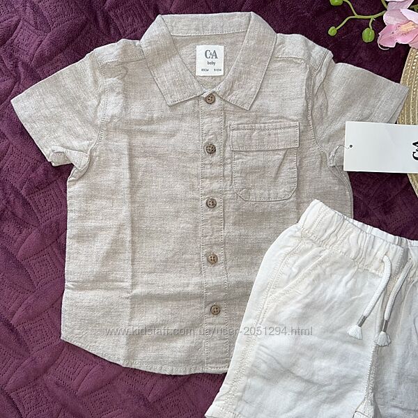 Літній костюм для хлопчика шорти теніска 52 льон Розмір 9-12 міс. 80
