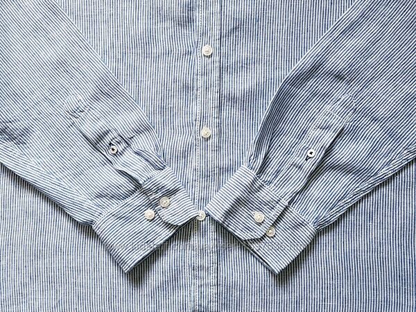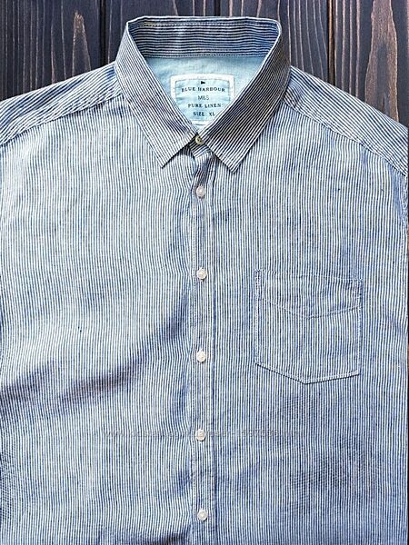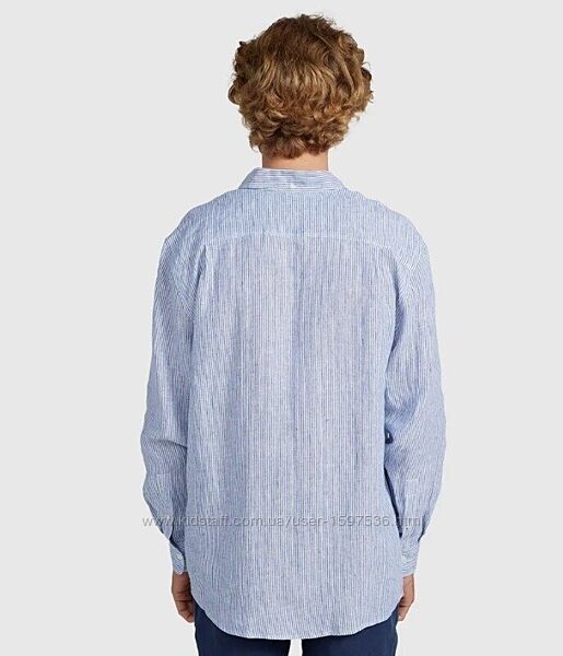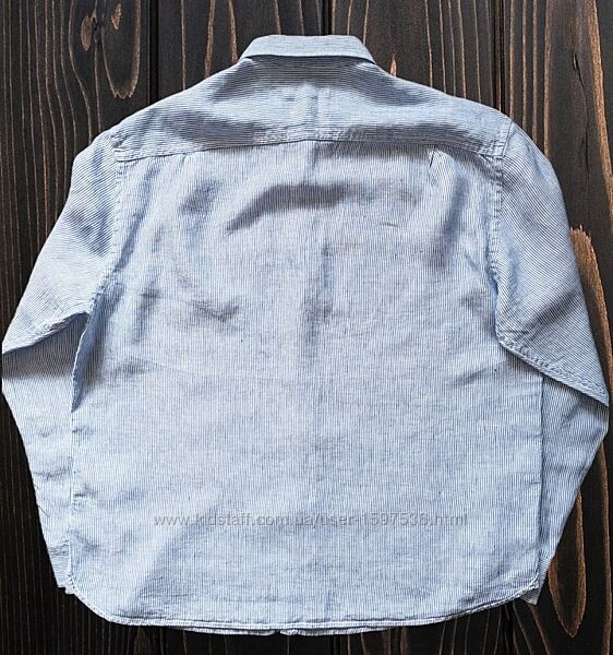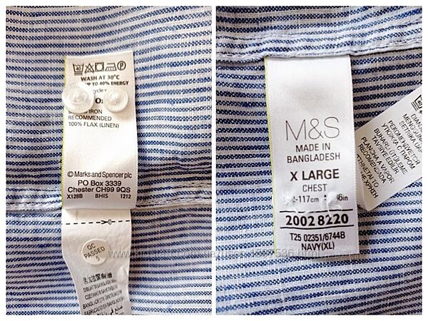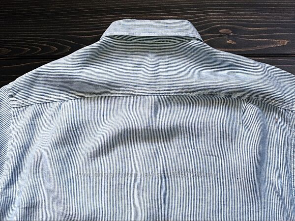 Мужская рубашка из льна известного английского бренда Marks&Spencer®Blue Harbour. Размер указан ХL , но может пройти и на XXL -наш 52-54размер (замеры см. ниже). Очень красивая, качественная, эксклюзивная. Модель Regular Fit с воротником Kent. Цвет указан Navy – бело-сине- серая полоска. Низ слегка полукруглый. Материал Pure Linen – 100% – чистый лен высочайшего качества. Рубашка имеет эргономичный крой и может носиться как на выпуск, так и в заправленном состоянии. Отличный вариант на жару для повседневной носки. Состояние – новой, сток. Производство Бангладеш. Цена на официальном сайте – от 40 фунтов. Отвечу на ваши вопросы. Замеры: ширина в плечах -51 см. ширина по спине (от подмышки до подмышки)- 65 см. ширина по талии 65см, ширина по низу 65см, длина рукава по наружному шву - 67 см длина рукава по внутр.шву – 54см. Общая длина рубашки –80 см. Ворот 44-46см