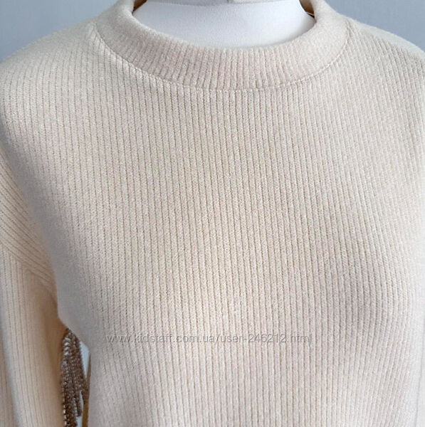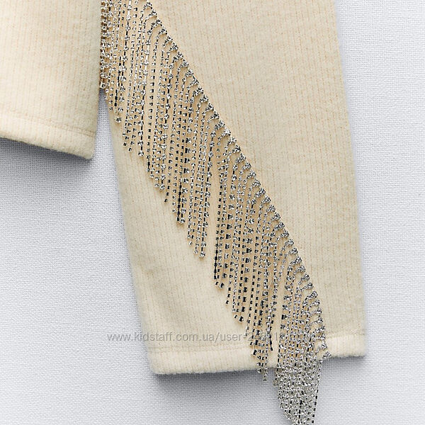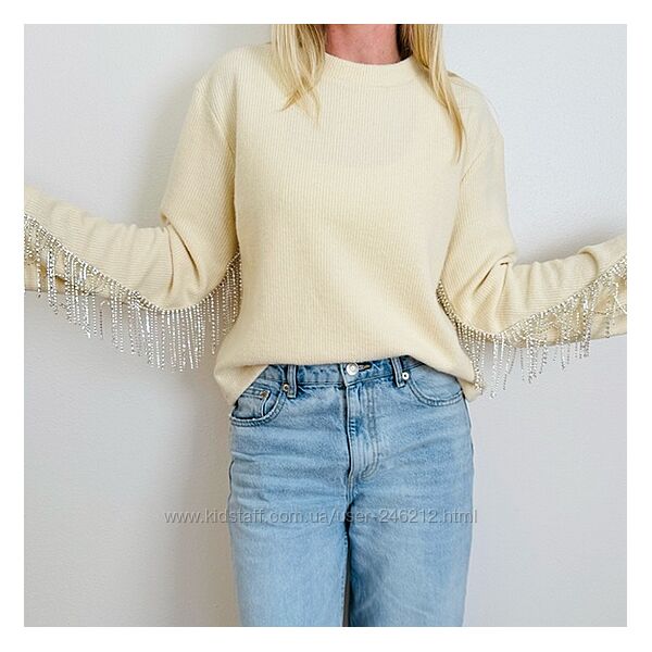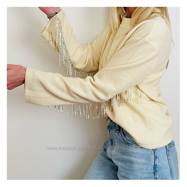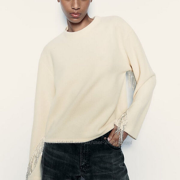 Шикарний світшот Zara з бахромою зі стразиків!Колір кремовий.