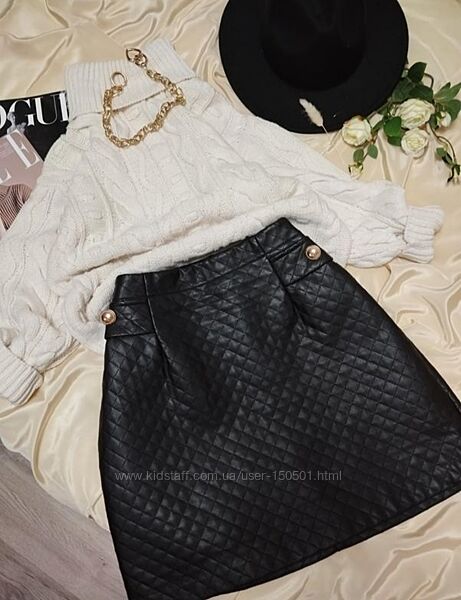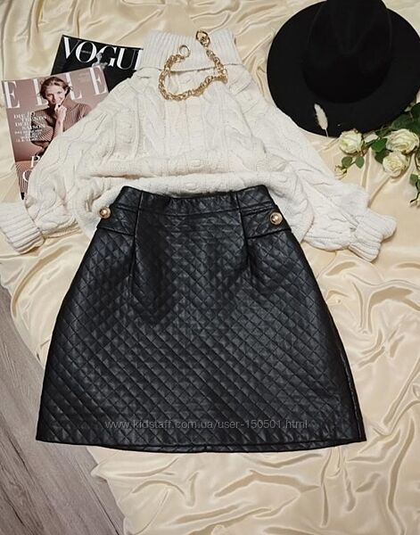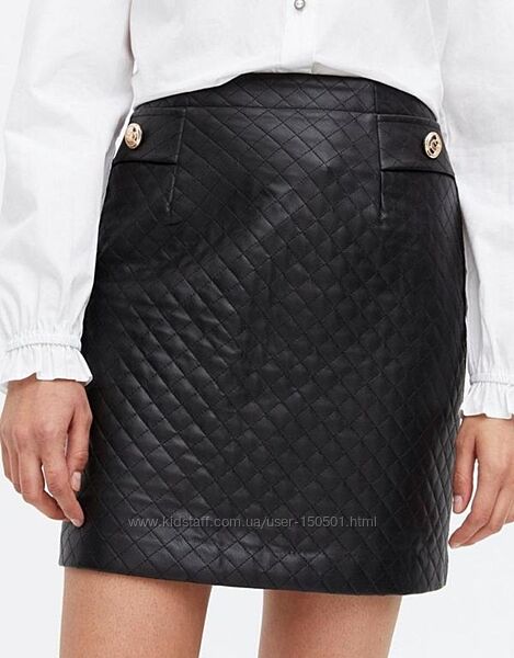 Чорна стьобана шкіряна міні-спідниця на ґудзиках New Look. Спідниця у стилі Шанель, Бальман.Стан відмінний.- Висока талія