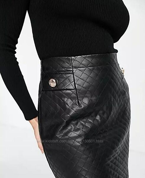 Подробное описание: Чорна стьобана шкіряна міні-спідниця на ґудзиках New Look