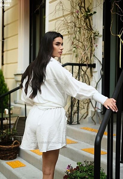 Бездоганний у кожній деталі ✨Легкі шорти та рубашка з розрізами на рукавах. Гарно сідає на будь-який розмір, пасує кожній фігурі.