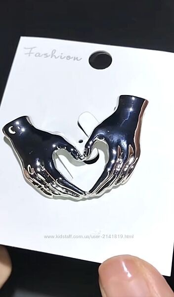 Подробное описание: Стильная брошь в форме рук изображающих сердце, брошь руки, брошка руки