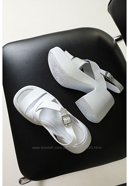 Стильные босоножки кожаные на массивной подошве платформе с каблуком белые.Также доступен черный цвет.