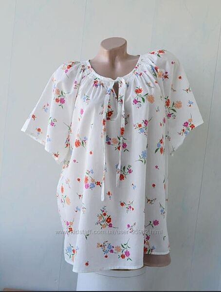 Невагома ніжна блузка вільного крою Marks & Spencer, з 100% бавовни — незамінна річ на найспекотнішу погоду. Прекрасна якість тканини,подібний крій носиться вільним, не беріть її впритик, зверніть увагу, як