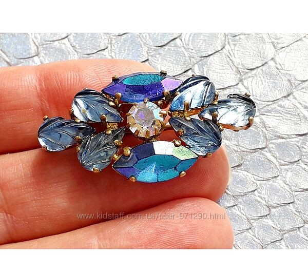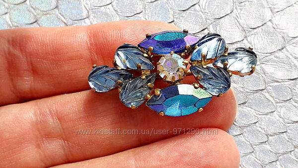 Винтажная брошка с голубыми резными кристаллами Juliana