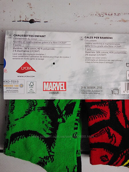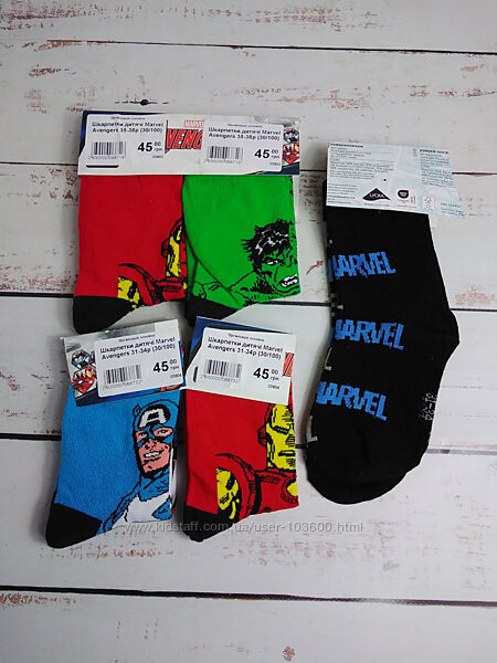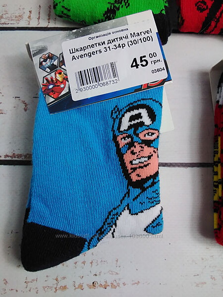 Подробное описание: Шкарпетки дитячі для хлопчика Marvel Avengers Різнобарвний 30/32/100