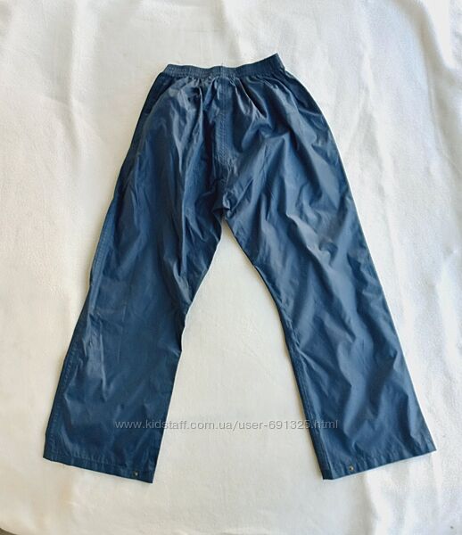 Пропоную сині водостійкі штани на дитину 9-10 років. Матеріал - плащівка з додатковим покриттям всередині, шви проклеєні . Вживані акуратно, стан дуже добрий, щодо дефектів дивіться опис.1. Фото 1-6 Regatta. Довжина з бокового шва 87 см, з внутрішнього шва 60 см, ширина талії 26 см, тягнеться до 40 см, ширина стегон 53 см. Ширина штанини зверху 30 см, внизу 22 см.