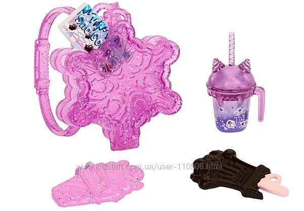 В комплекте с ней идет милый питомец мамонт Тундра, пушистый шарф, поясная сумка в стиле сосулек, рюкзак со снежинками и матовые очки с подходящими серьгами.