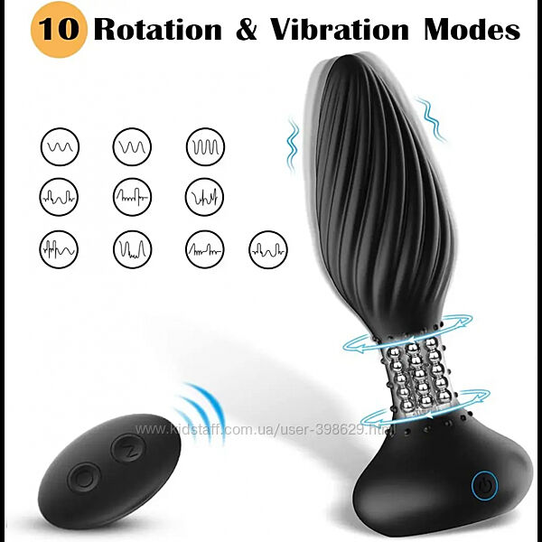 Анальный стимулятор простаты или красивая анальная пробка с вибрацией, вращением и пультом - это интимная игрушка, которая подойдет как для мужчин так и женщин. Она имеет эргономичную форму и продуманную конструкцию, позволяющую эффективно массировать предстательную железу и доставлять невероятное удовольствие. Имитация двойного проникновения то, о чем Вы давно мечтали, но пока не испытали, определенно поможет Вам разнообразить интим отношения. Анальный стимулятор выполнен из качественного медицинского силикона Soft–touch. Гипоаллергенный материал приятен к телу, не вызывает раздражений и травмирования в нежных интимных зонах, поэтому он абсолютно безопасен. С помощью пульта можно выбирать один из 10 режимов стимуляции (вибрация + вращение шариков у основания пробка, эти две функции работают одновременно), которые позволят экспериментировать с ощущениями и наслаждаться процессом. Вибростимулятор водонепроницаем, что позволяет его мыть под проточной водой и играть с ним в душе. Но полностью погружать его в воду не рекомендуется. Современная USB зарядка позволяет быстро и удобно зарядить устройство. Перед использованием ребристую секс-игрушку необходимо смазать лубрикантом на водной основе, со смазкой ощущения будут еще эффектнее. Также не забывайте о гигиене - мыть силиконовую игрушку после каждого использования и хранить ее в чистом и сухом месте. Купите анальный стимулятор и получите незабываемые ощущения во время секса!Размер: 150*43 mm.