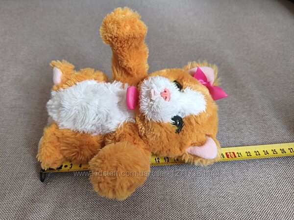 Інтерактивна іграшка з серії Забавні тварини від FurReal Friends Hasbro кошеня Пік-а-Бу Дейзі.Натисніть їй на животик і вона піднесе свої милі маленькі лапки до обличчя, щоб пограти в гру «підглядай». Вона також видає різні нявкання, як справжнє домашнє котеня. Коли настане час годування, помістіть її пляшечку до ротика, і вона буде видавати чарівні звуки пиття, це спрацьовує і на палець, якщо його піднести до рота, там кнопка.