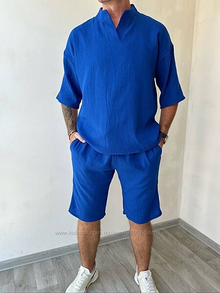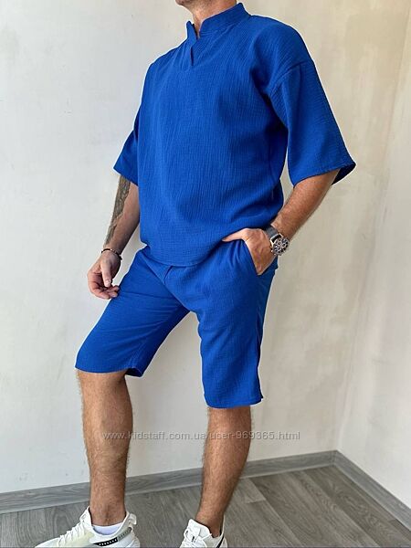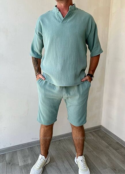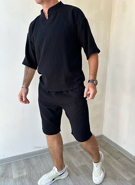 Легка, дихаюча тканина, яка добре пропускає повітря, що робить цей костюм ідеальним вибором для літнього гардеробу