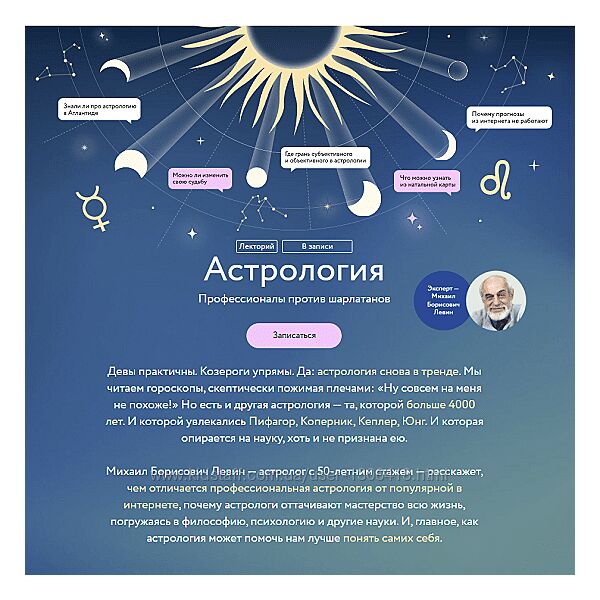 Подробное описание: Астрология. Профессионалы против шарлатанов. Все лекции Михаил Левин