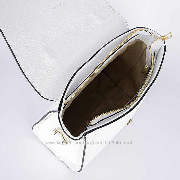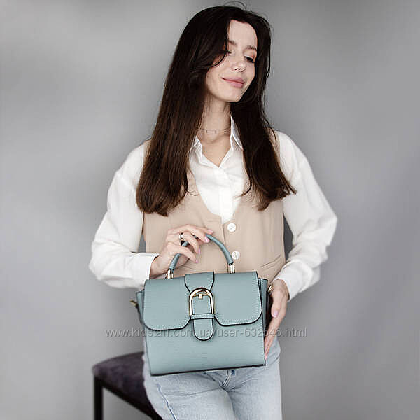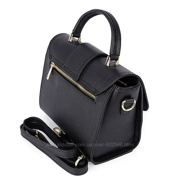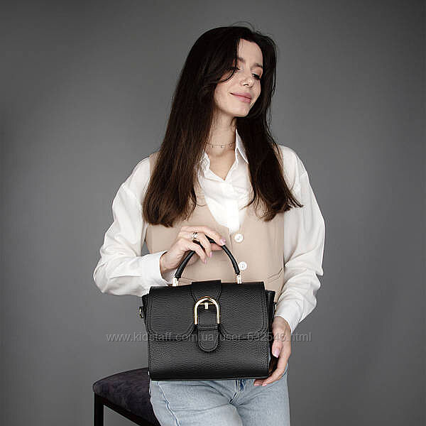 Містка та функціональна: вміщує гаманець, телефон, блокнот, ключі, документи, косметику або павербанк. Оснащена шкіряною незнімною ручкою та знімним регульованим ремінцем, що дозволяє носити її в руках, на плечі або через плече.
