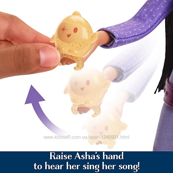 Знову переживіть музичні розваги з модною лялькою Disney´s Wish Singing Asha of Rosas із піснею «This Wish»!Діти починають магію, піднімаючи руку Аші, і приєднуються до неї, коли Аша співає 30-секундний кліп англійською!
