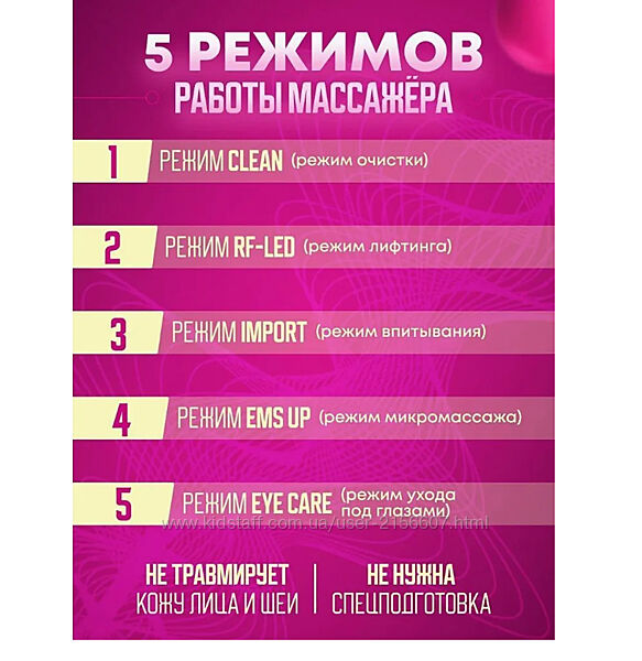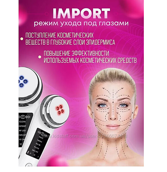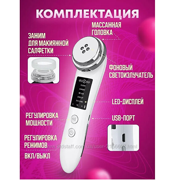 Подробное описание: Мікрострумовий масажер 5-в-1. EMS, Вібрація, Іонізація, Гаряча І Світлотера