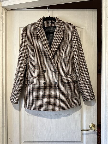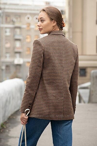 Прямой двубортный пиджак бойфренд в гусиную лапку