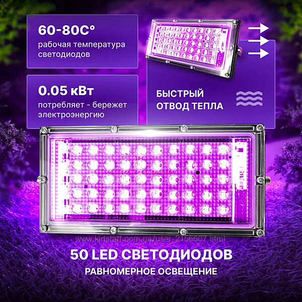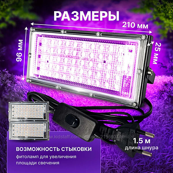 Фитопрожектор для растений, цветов, рассады 50вт/220в с вилкой и выключател