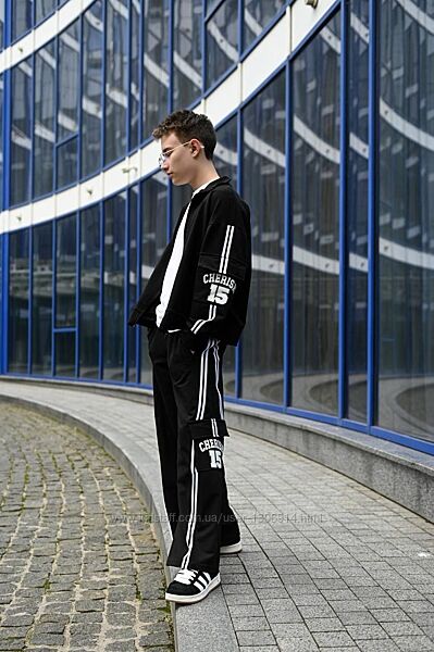 Тканина: турецька двонитка не линяє, не скочується, гарно тримає форму. Преміум якості. Штани зі стильнимм накладними карманами на штанах та рукавах. Пришивні трендові лампаси.