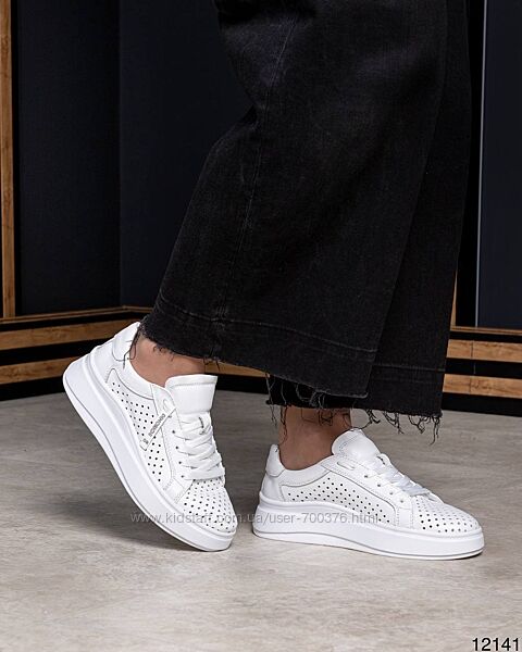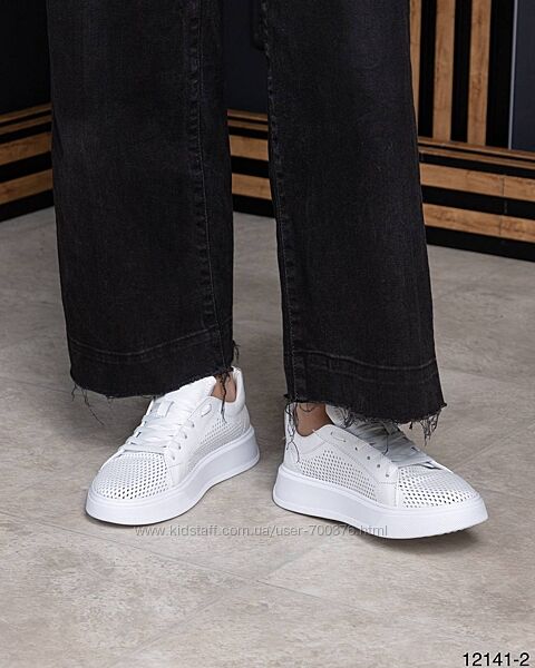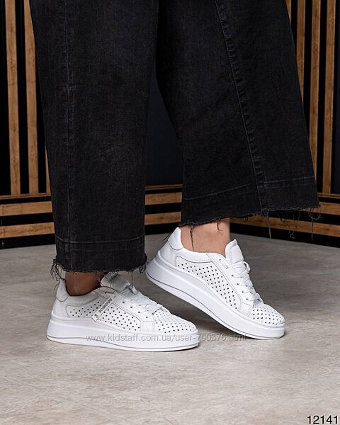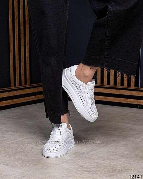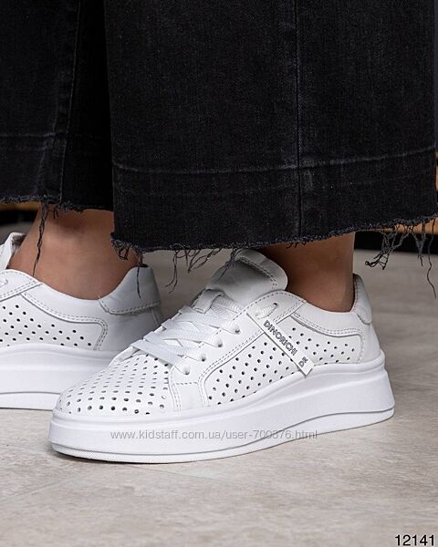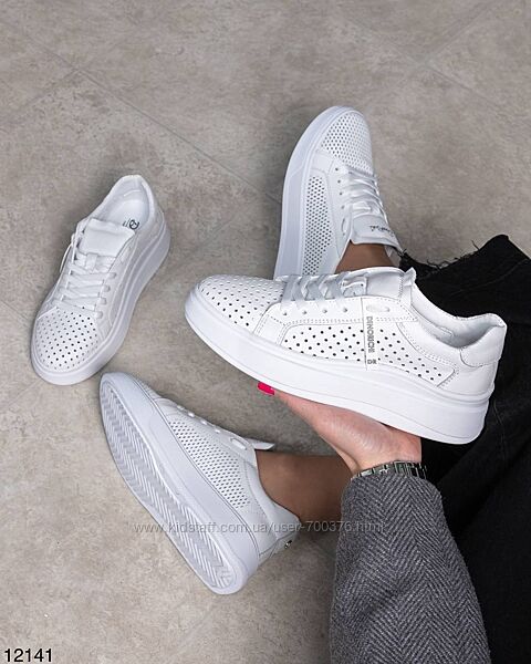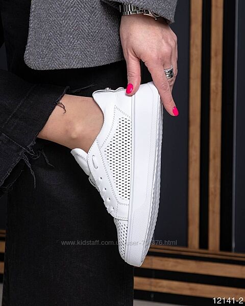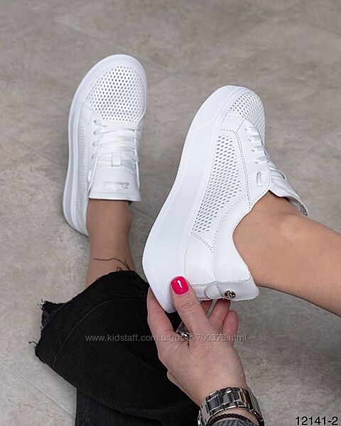 Кеди, натуральна шкіра з перфорацією, білі. Шкіряна внутрішня частина, устілка Memo. Висота підошви 4/2.5 см. Розмір в розмір. Розмірний ряд: 36-41. Український виробник.