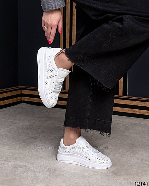 Подробное описание: Кеди, натуральна шкіра з перфорацією, білі
