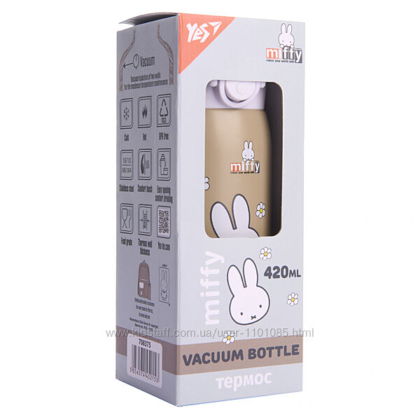 Термос торгової марки Yes - надійний аксесуар, який збереже тепло або прохолоду напоїв та стане у нагоді під час навчання, подорожі та прогулянки.Термос із дизайном у стилі Miffy - це ідеальний вибір для хлопчиків! Пориньте у захоплюючий світ Miffy разом з нашим термосом!