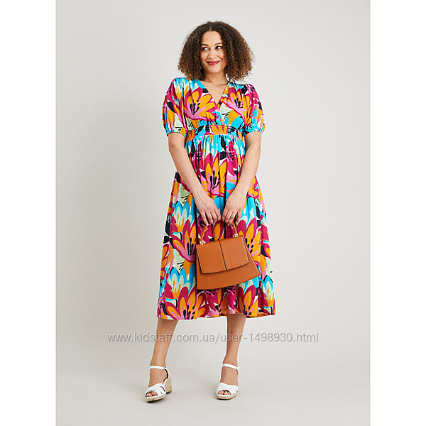 Подробное описание: Яскрава квіткова сукня міді з чистої бавовни р.22