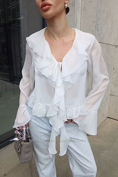 Подробное описание: S. M. L Жіноча шифонова блуза на запах оздоблено вишуканими воланами