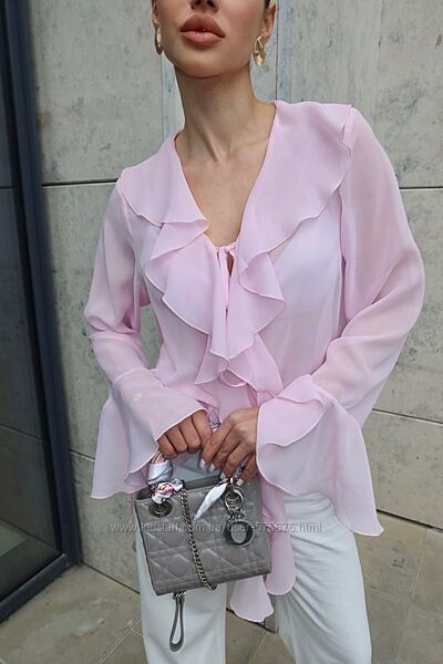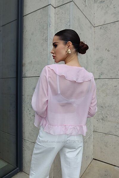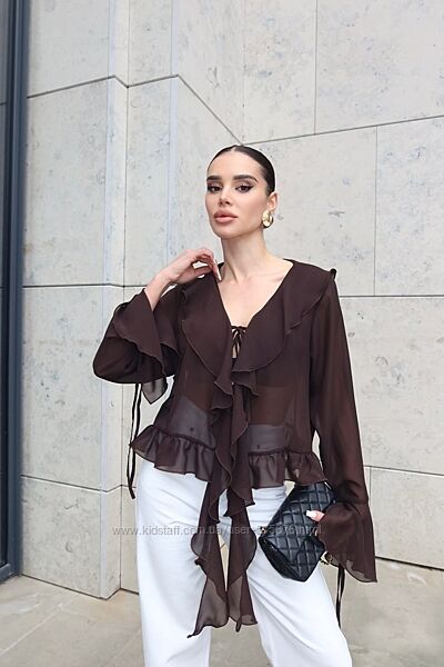 Стильна шифонова блуза на запАх. Модель оздоблено вишуканими воланами
