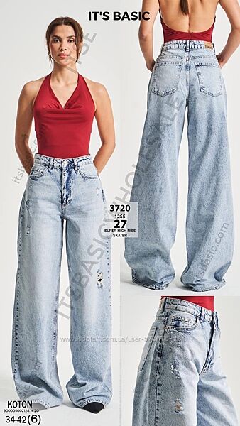 Подробное описание: 34,36,38,40,42 Стильні джинси джинс коттон без стрейчу широкі штанини