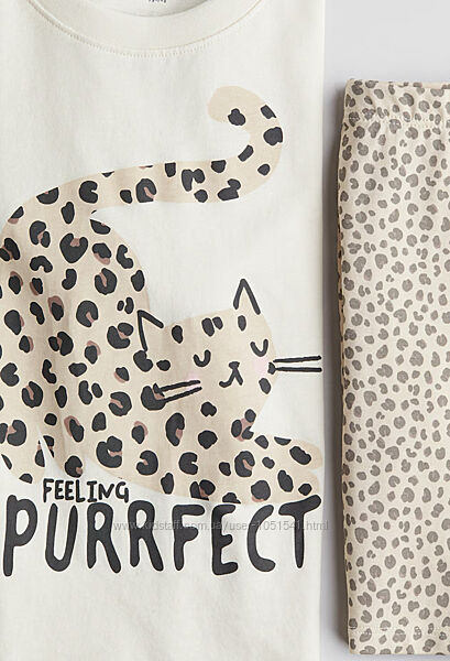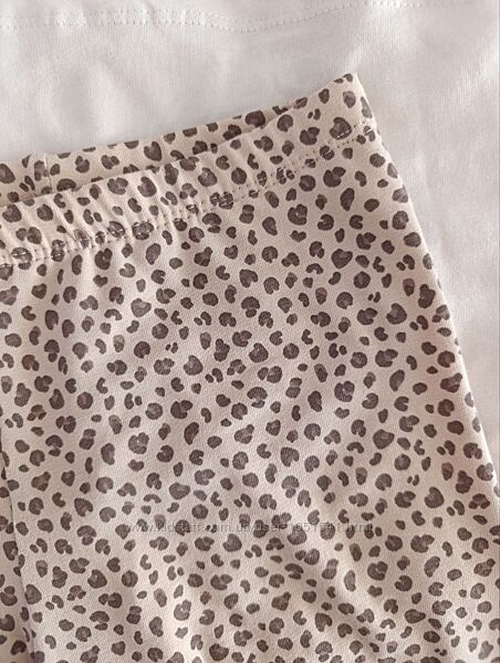 Комплекти від H&M подовжена футболка туніка з м´ягкого трикотажу і полулосіни .КОЛІР бежевий , принт лео котик