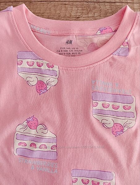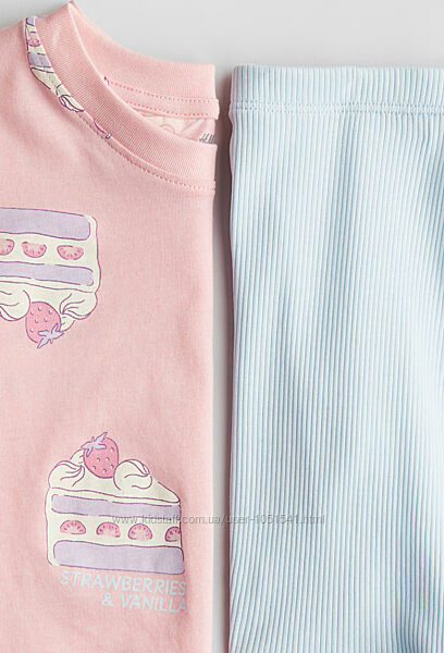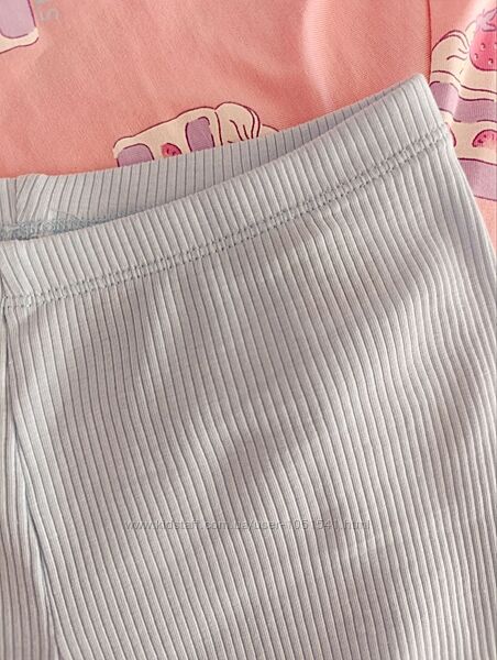 Комплекти від H&M подовжена футболка туніка з м´ягкого трикотажу і полулосіни .КОЛІР рожево -голубий , принт-тортик