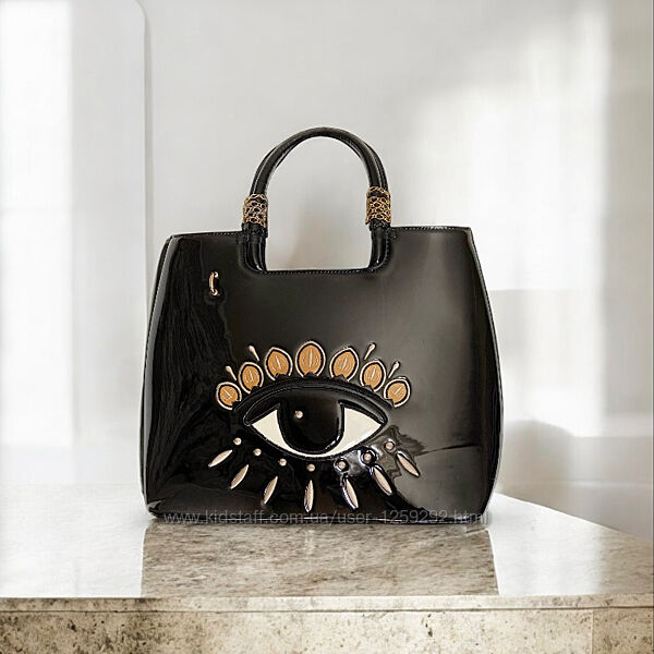 Сумка Всевидящее Око 43/26 Лакированный Кожзам Состояние очень хорошее: Подкладка и внутри, как новая На лицевой части есть незначительные царапинки- видны только на солнце под определенным углом. Ширина 43 Высота 26 Дно 12 Короткие ручки высотой 17 см( можно носить на плече в теплое время года, с объемной верхней одеждой будет неудобно) 7 отделений : 2 больших с перегородкой посередине 1 перегородка на молнии 3 боковых( одно на молнии) 1 карман сзади на молнии ТОРГА НЕТ!ВСЕ ЦЕНЫ ОКОНЧАТЕЛЬНЫЕ!